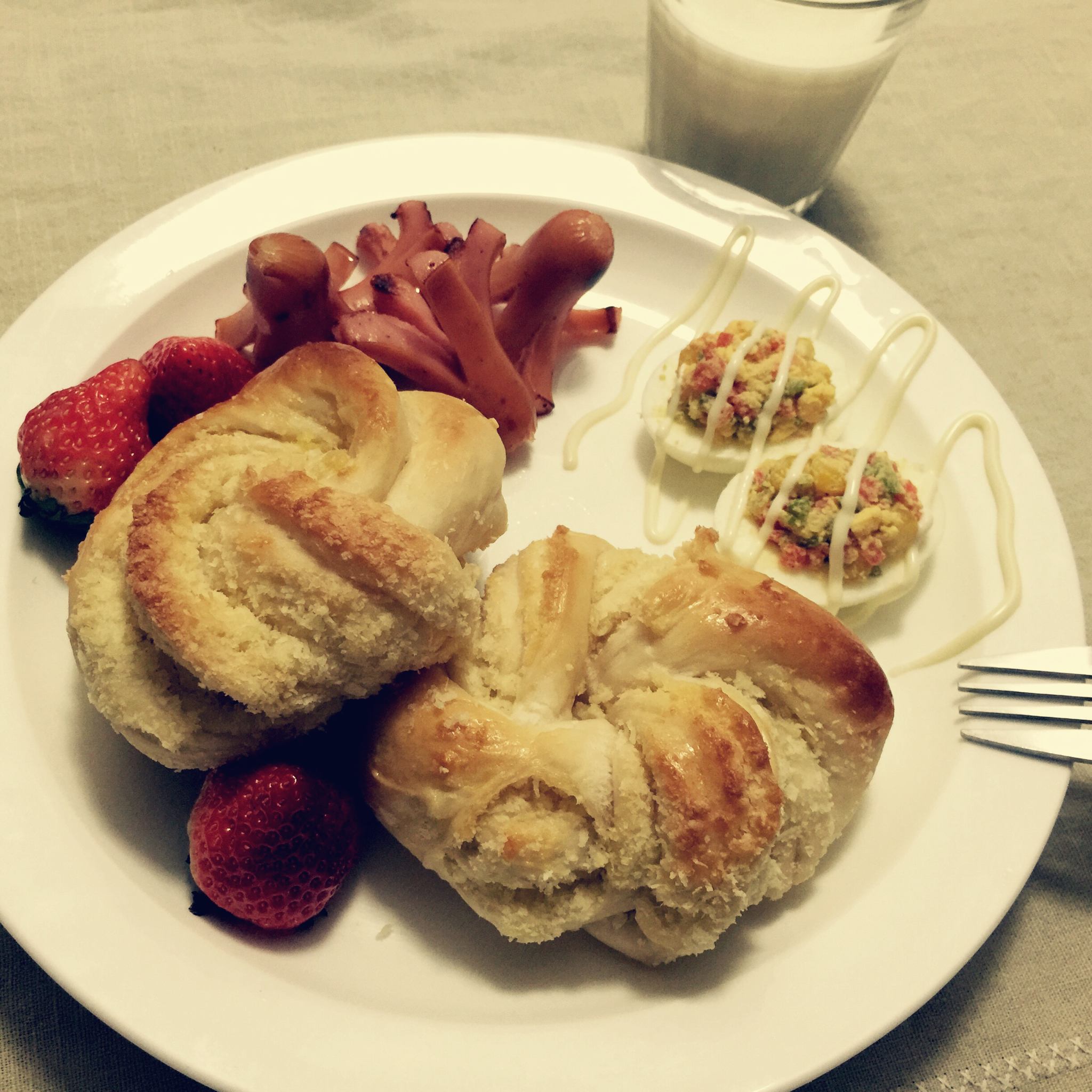 Oo依依oO 做过 早餐•2015年12月26日 慵懒的周末,被雾霾搞的超级心情低落,来点正能量吧。愿椰蓉面包,鸡蛋沙拉盅,香煎脆皮肠,满满的热量给这个阴霾的清晨加点色彩和热情吧。早安,熊爸。 #早餐•2015年12月26日# 2015-12-26