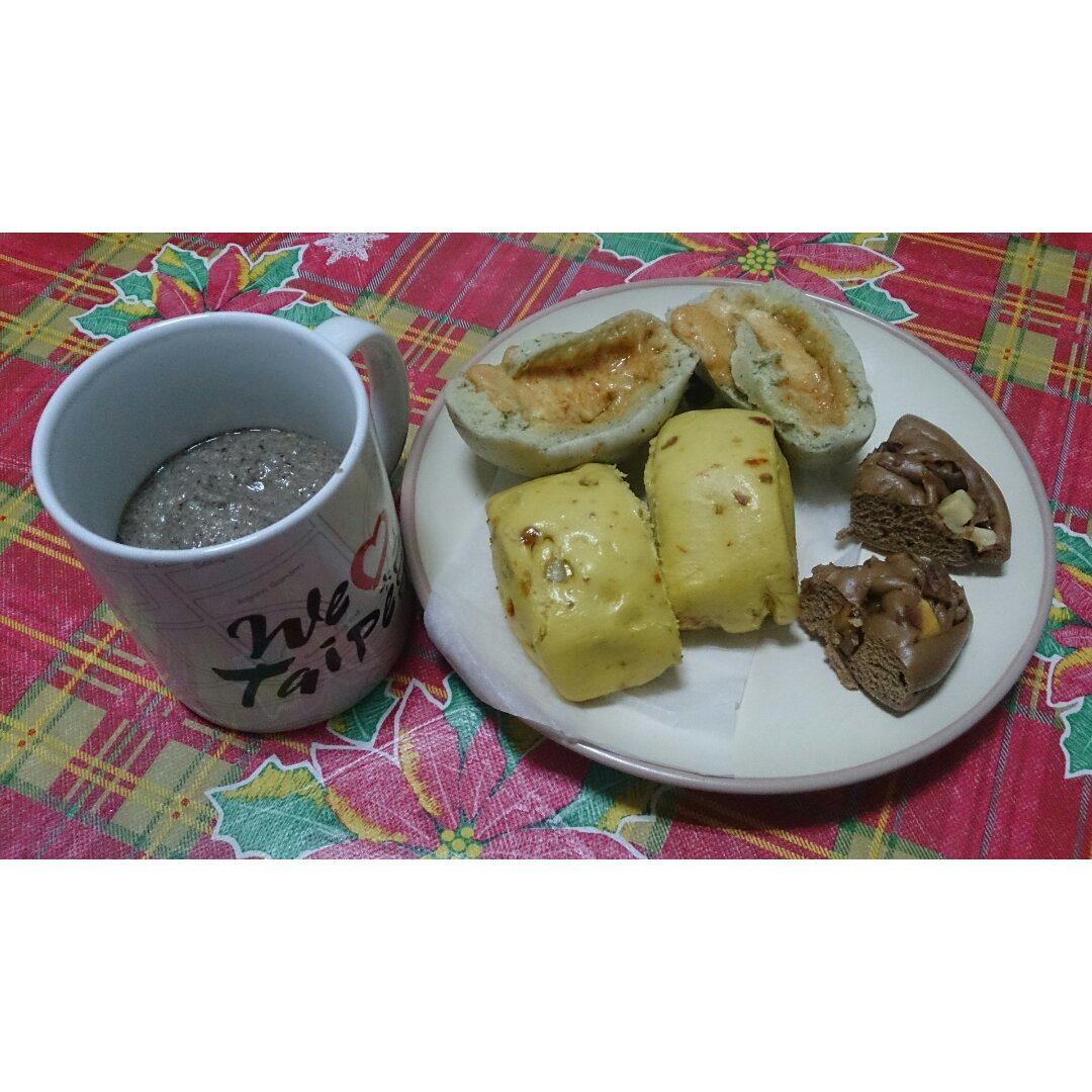 爸媽還在鬧脾氣,不想搭理他們莫名的情緒,自己吃早餐吧!除了義美的包子,其他口味的包子都是從台南的老店帶回來嚐鮮的,我很喜歡!尤其是核桃那個,天知道我多討厭核桃味兒,但這款我可以!
