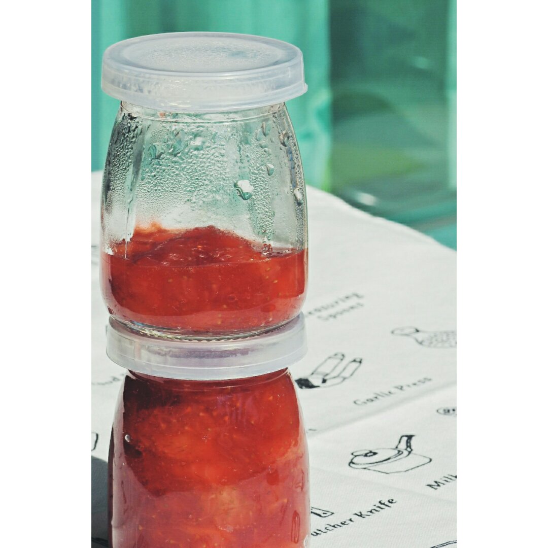 250g的草莓 40g糖 略甜哈哈 下次再减糖 but真的猴猴吃噢!(舔勺子中……)