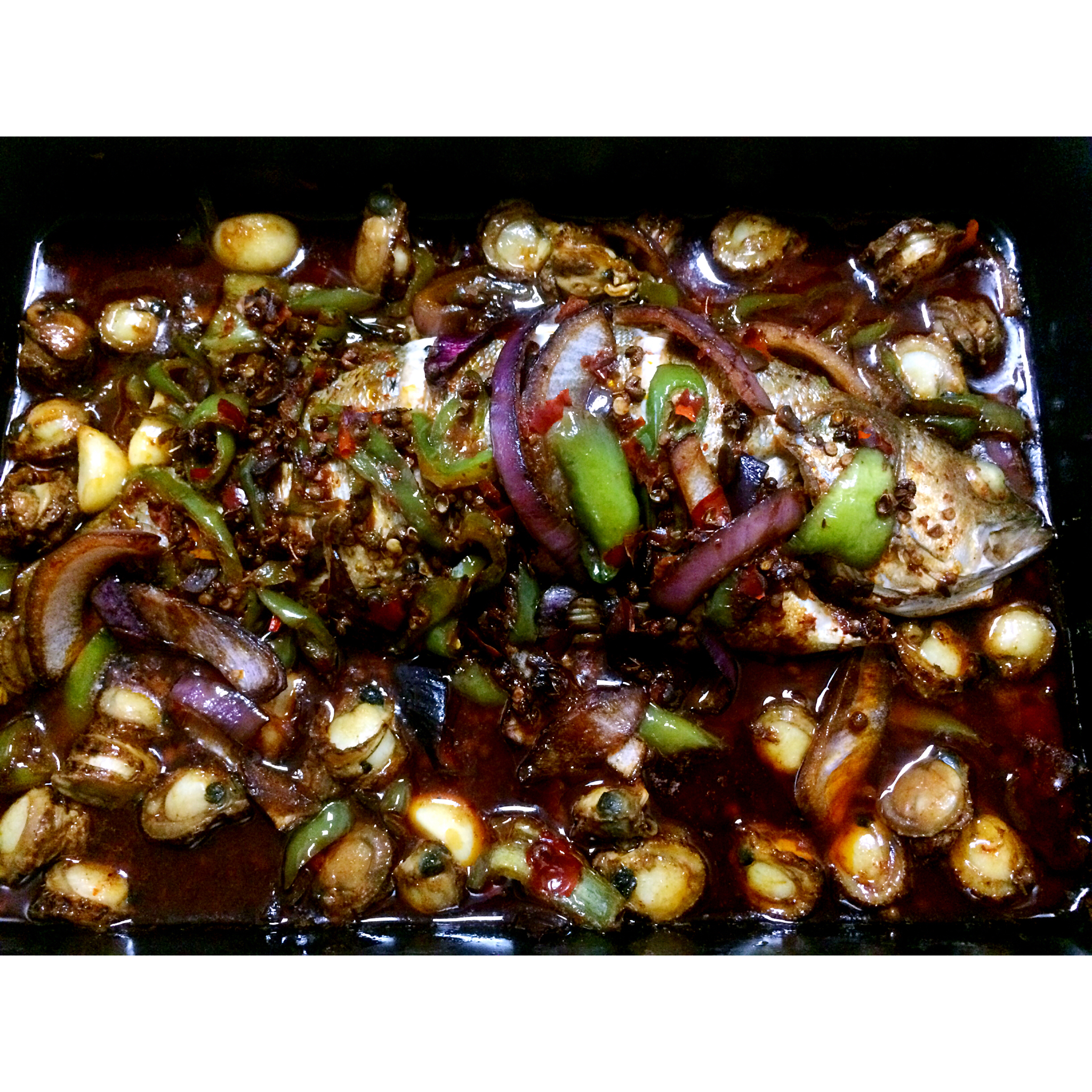 自创的烤鲈鱼➕扇贝肉,好吃到爆🎉