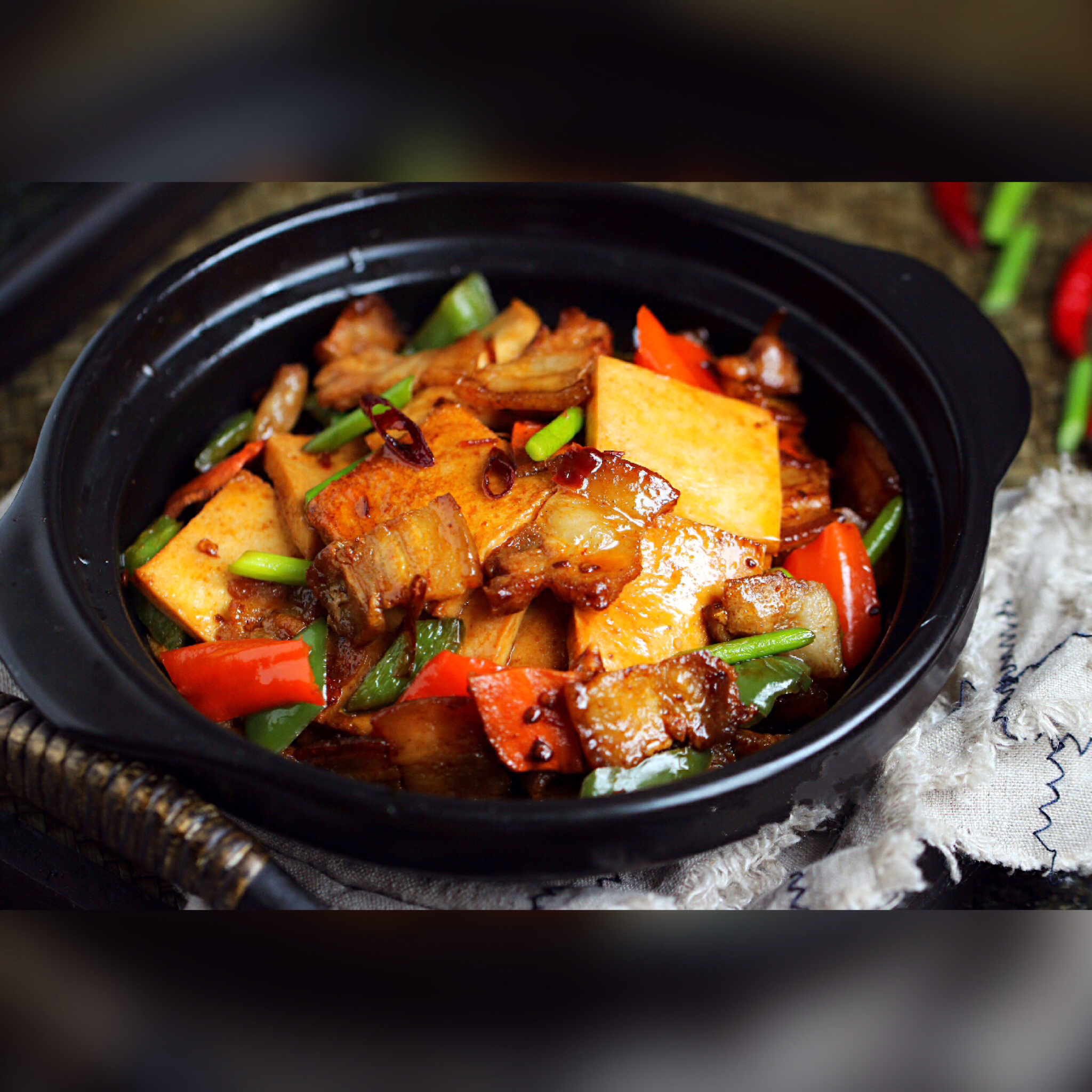 自由自在的因子 做过 干锅千页豆腐 发现郫县辣椒酱也是万能酱,入菜后的菜色也非常诱惑人。乱写一菜谱,不过味道真心好吃,哈哈,比饭馆好吃。😁😁 #晚餐•2016年4月5日##家常味道# 2016-04-05