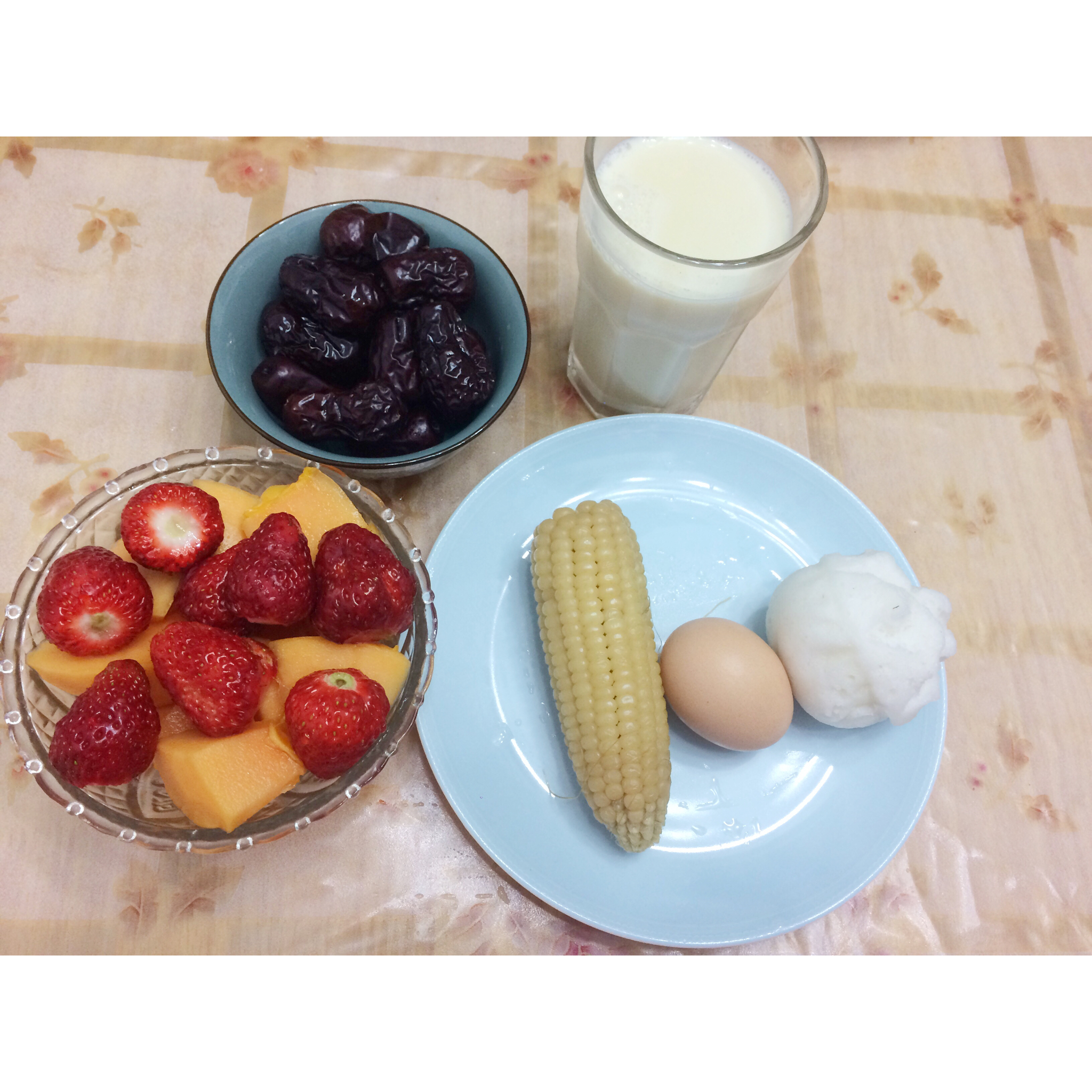 貝BEI 做过 早餐•2016年4月16日 早餐标配量~总被某人吐槽早餐吃太多→_→可是宝宝胃口就是这么好😋红枣蒸起来满屋子的红枣香,暖暖的奶奶冻起来的玉米,够我吃到下个玉米季了~豆浆打得超级浓,恩~都粘嘴巴呢☺ #早餐•2016年4月16日##weekend is angel##周末就是要在家胡吃海喝!# 2016-04-16