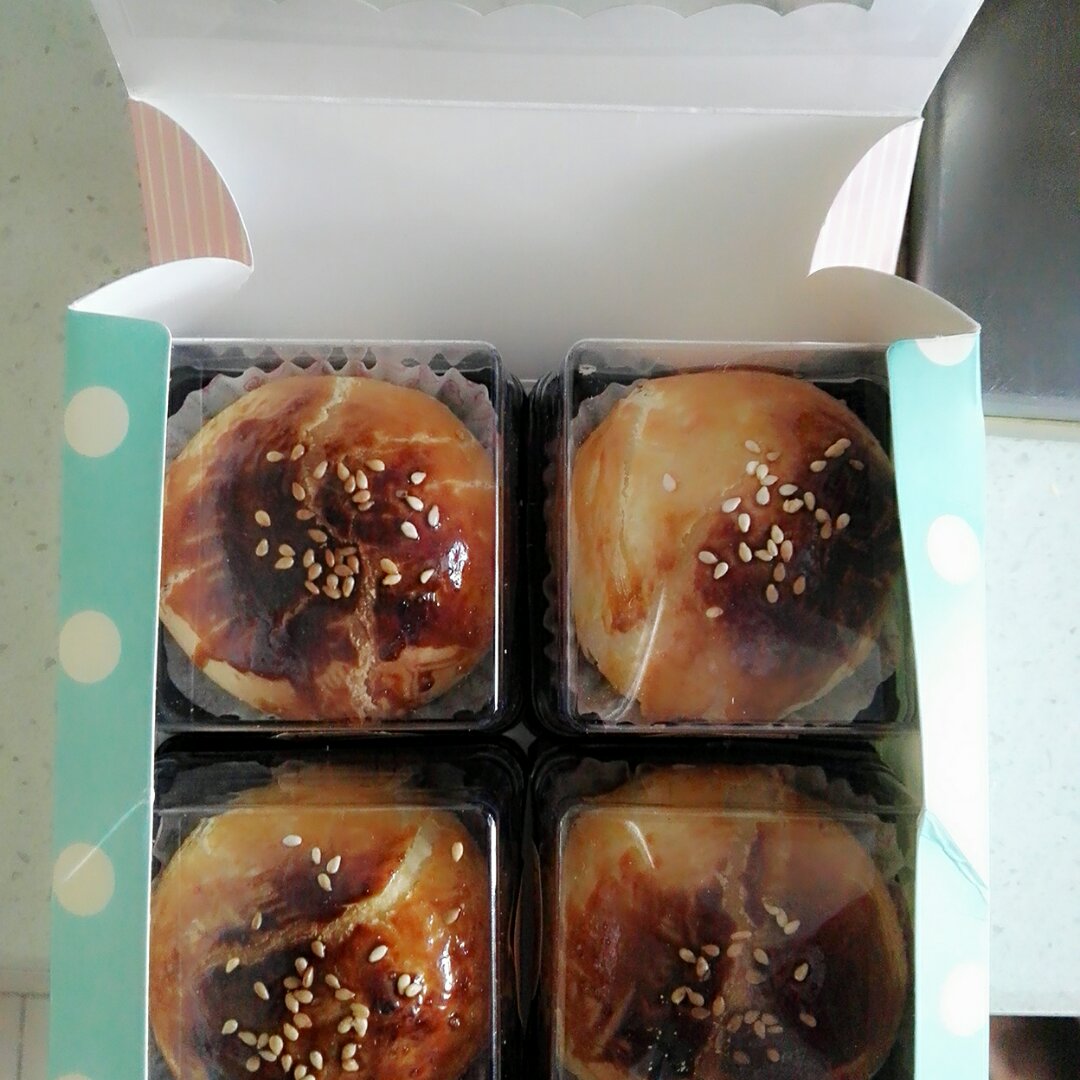 _不想取名 做过 麻薯香芋酥/台湾大甲芋头酥(无猪油完美复刻2015.10修订各种抹茶酥、绿茶酥、蛋黄酥、紫薯酥通用哟) 面包机揉面档30分钟,手揉十分钟没有出膜~温度计最下层显示190度,在中下层烤了25分钟,闷了5分钟,顶部部分没有起酥,蛋黄没有熟透,底部很好。又入炉子中层5分钟。下次可以中层25分钟观察上色情况。油皮35,油酥22, 豆沙25克。下次减少计量做~ 2016-05-03