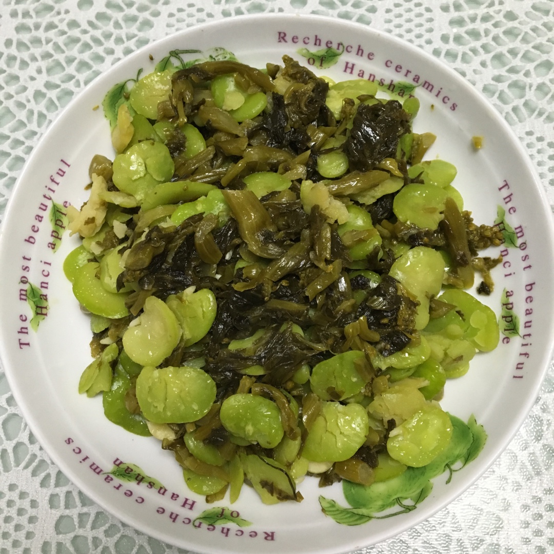 蚕豆老了,炒咸菜。