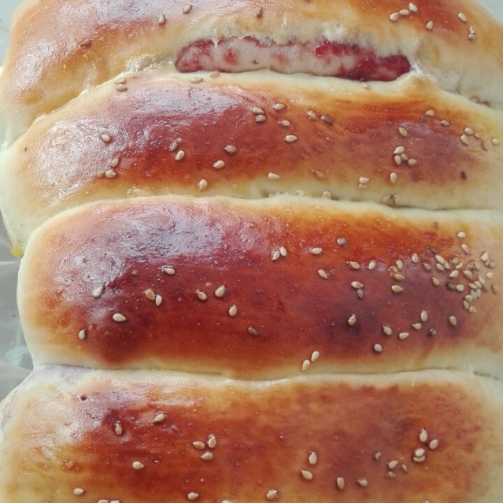 自己熬的草莓酱,做了草莓排包