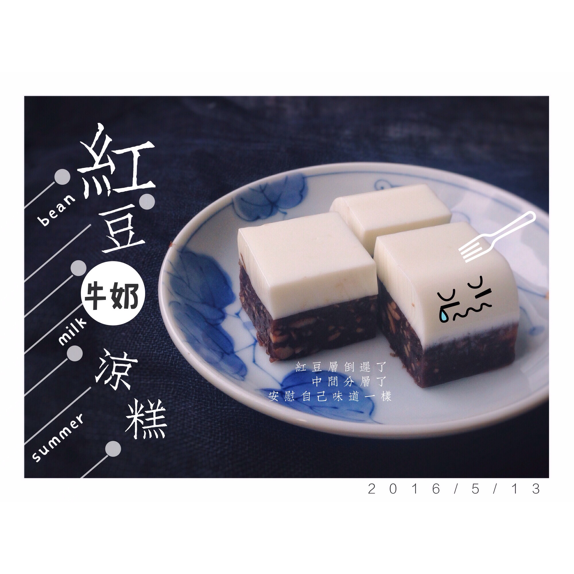 按这个方法做的 牛奶放了一小时后加红豆层,但还是分层了,下次得提前了。红豆自己煮的,家里黑豆多又加了黑豆~