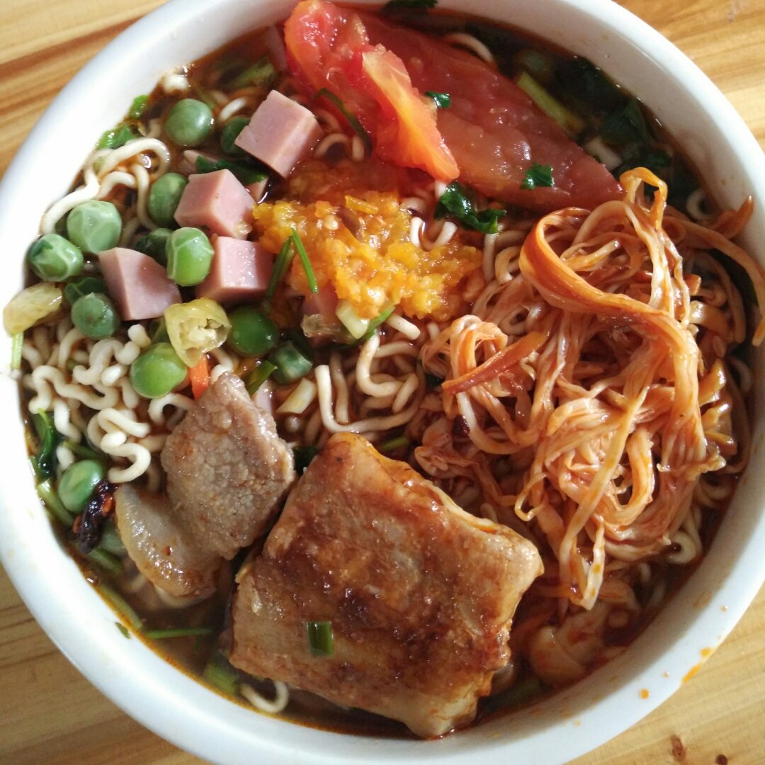 一袋泡面愣是做成华丽丽的豪华大餐有没有?😍😍😍😍