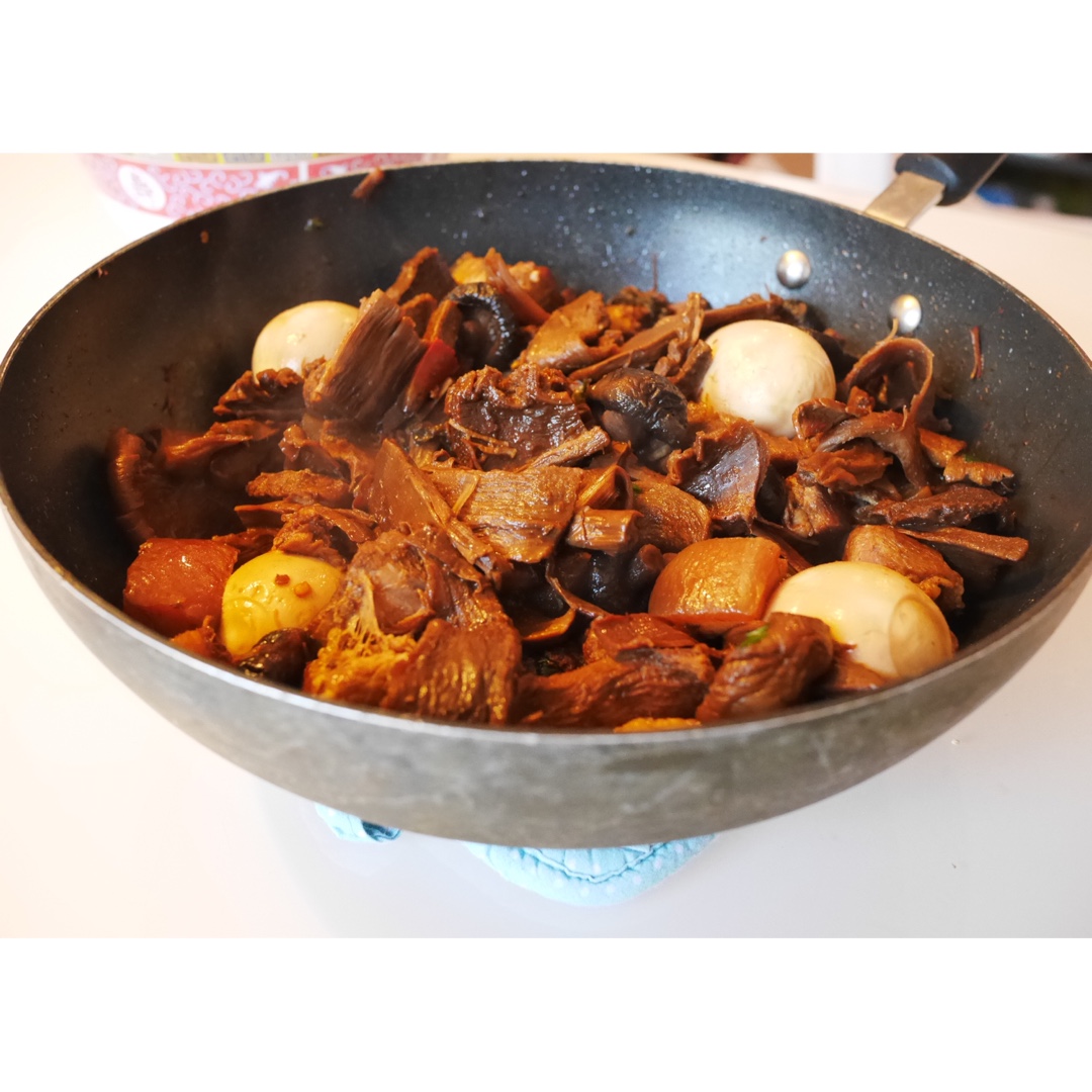 另加了两种干😅香菇和平菇 最后再放了四个鸡蛋进去泡泡...