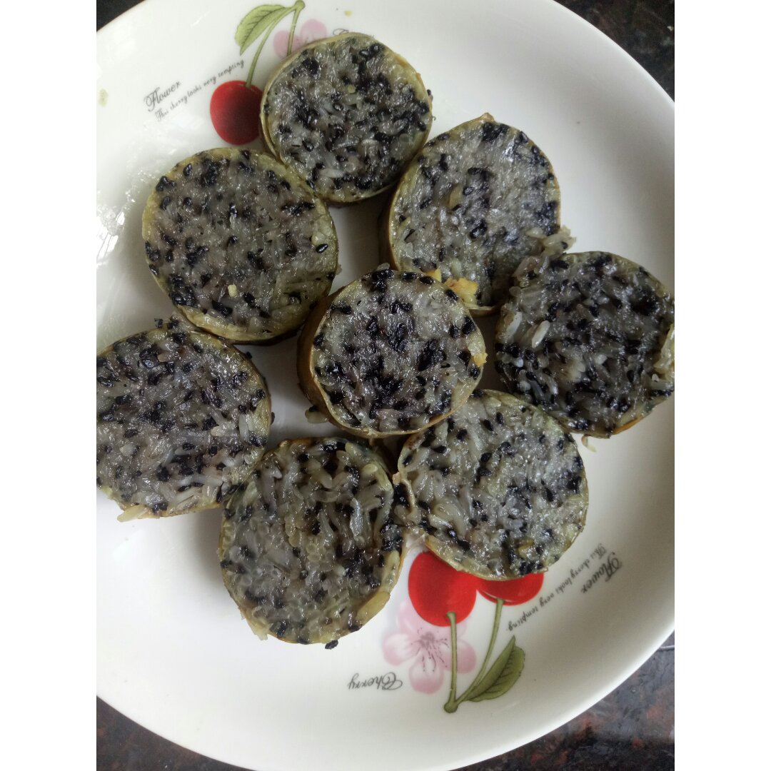 这是我们广东人最喜欢的糯米、黑芝麻入猪大肠。