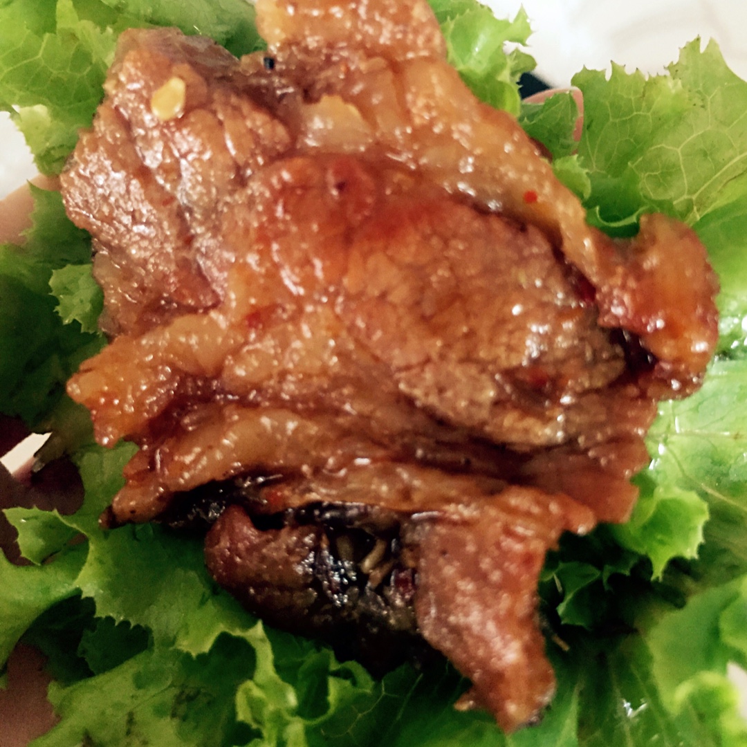 香草奶茶_v85y 做过 晚餐•2016年8月2日 😋😋生菜包肉 用新鲜腌制好的猪梅花肉 小火不加一滴油煎熟剪小块 包着生菜吃 浓浓的肉汁在口中弥散开来 太幸福了 #晚餐•2016年8月2日# 2016-08-02