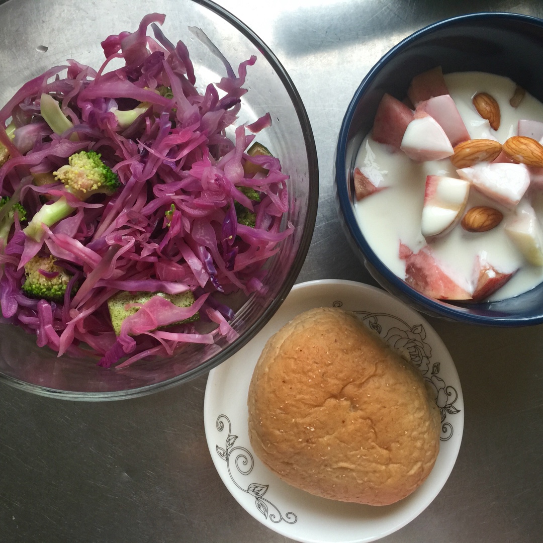 要瘦也要吃的少女 做过 我的一日三餐,减脂增肌食谱记录帖 别问我紫甘蓝怎么这颜色🙈因为我任性的绰水了,又加了苹果醋………………就酱紫了…………希望吃完不要中毒啊 #早餐•2016年8月6日# 2016-08-06