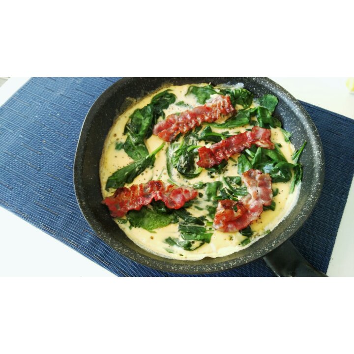 培根菠菜烘蛋(这么厚的锅居然都被我用变形了)