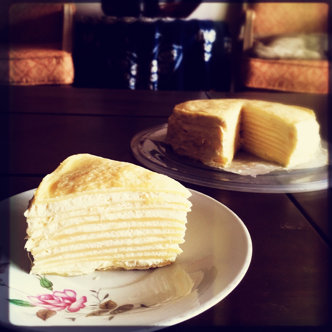 千层皮用的这个方子,榴莲是和奶油混起来做的。