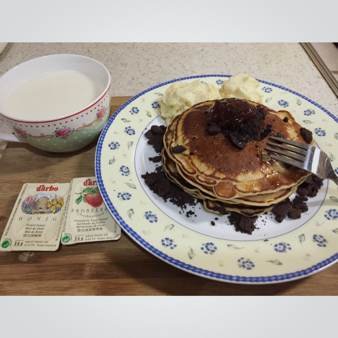 煎不出黄色。黑黑的干脆配点奥利奥。味道很好。