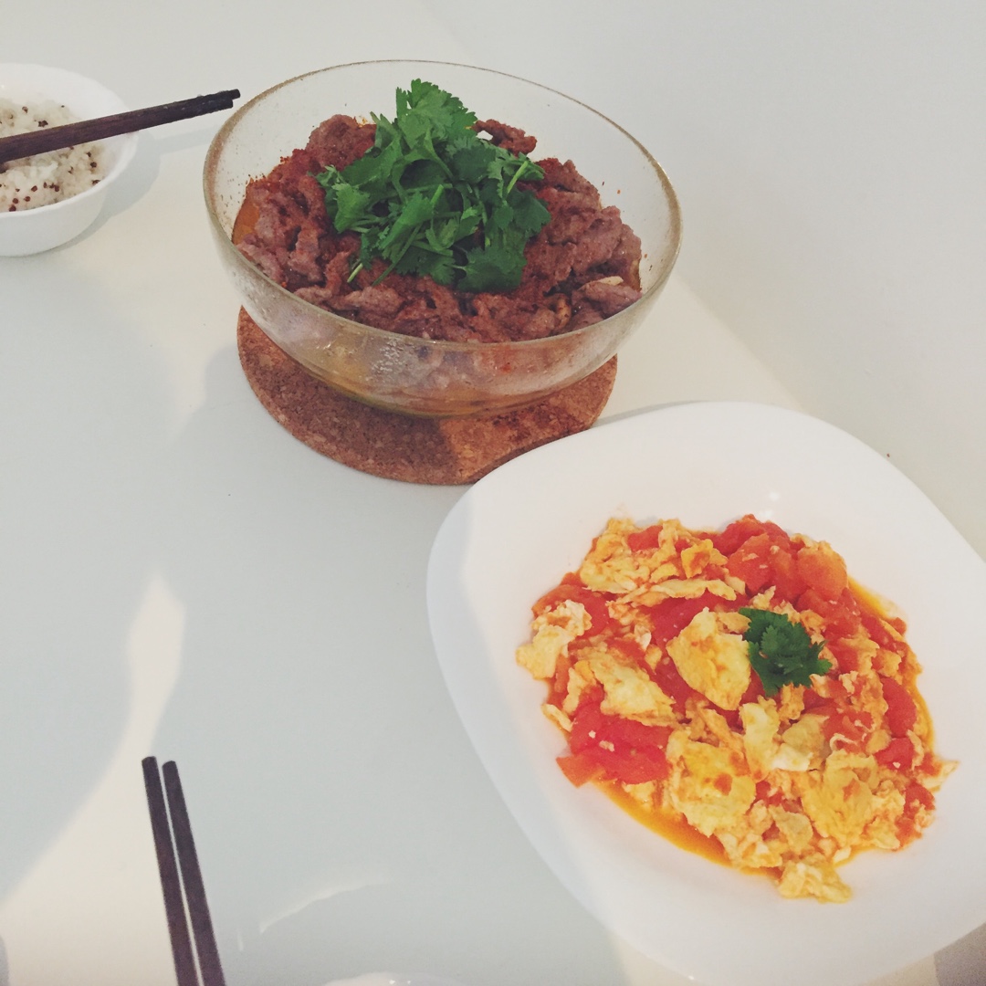 水煮牛肉+番茄炒蛋