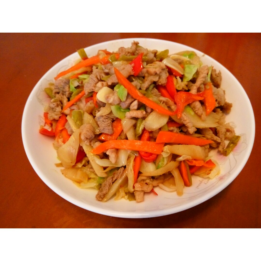 泡菜肉丝,凉拌黄瓜,米饭🍚好吃简单。