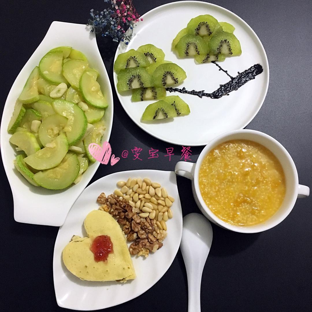 麦子爱古筝 做过 早餐•2016年9月1日 2016/10/1310月开学第6⃣️天[奋斗] 天气薄凉,唯有一碗热乎乎的南瓜小米粥才可以抚慰沉睡的味蕾[呲牙]~今日雯宝早餐记录:南瓜小米粥、蒸蛋糕片+核桃松子坚果、清炒茄瓜、弥猴桃 #早餐•2016年9月1日# 2016-10-13