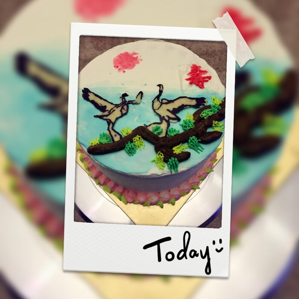 松鹤祝贺寿辰奶油生日蛋糕