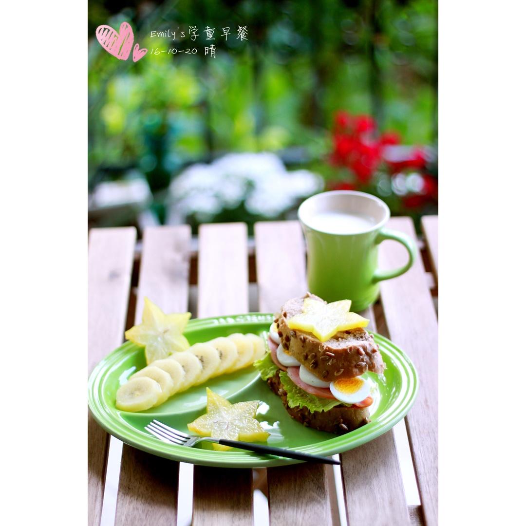 心中荼靡 做过 早餐•2016年10月20日 Emily's家有学童:外出2日归来,结束大雨模式一大早艳阳高照,是日早餐:郭先森昨天早上给Randy准备的杂粮核桃包没吃完今早演变为三明治,牛奶,金奇异果&杨桃。 #早餐•2016年10月20日##Emily's学童早餐~~Today's Breakfast# 2016-10-20