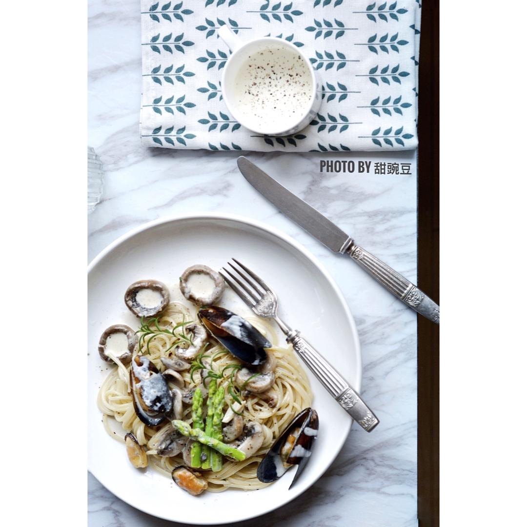 浓郁的奶香,鲜美的青口,再配上清爽的芦笋……