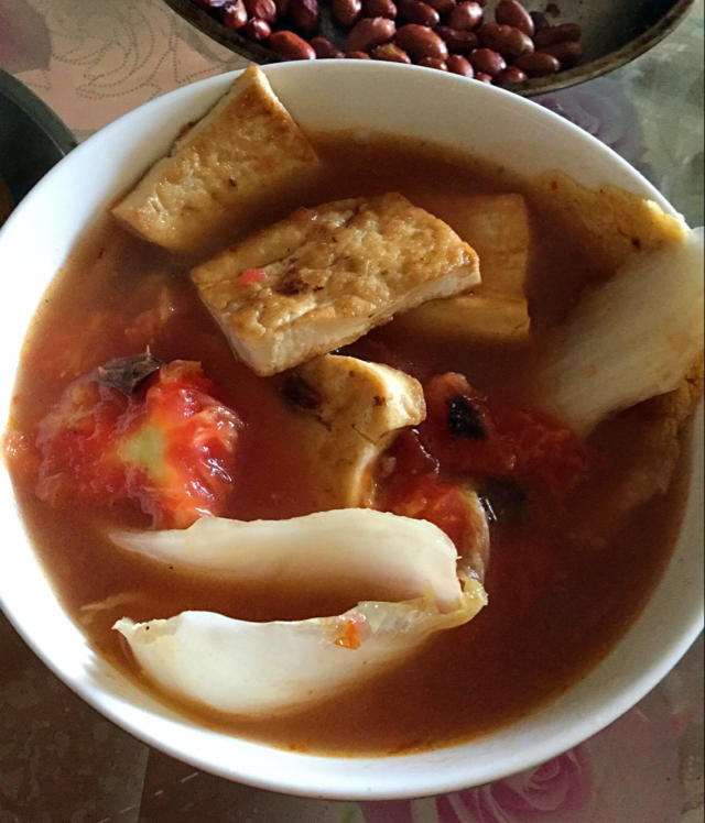西红柿炖豆腐的时候快干锅了就加了大半碗水结果娃娃菜一加进去水就越来越多了。。娃娃菜叶子都埋在汤里啦🙈喜欢这红红的汤汁~最后吃完还泡了馒头就只剩半碗汤了~西红柿豆腐炖白菜我的最爱,美中不足的是这次的娃娃菜不水嫩很蔫儿。。不过丝毫不影响我吃饭的热情啦啦啦。