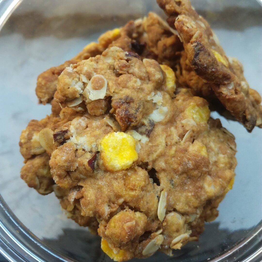 面100g,糖20g,油26,燕麦片玉米片共80,水适量,还放了蜜枣,蜜枣烤后好硬,以后不放了😓