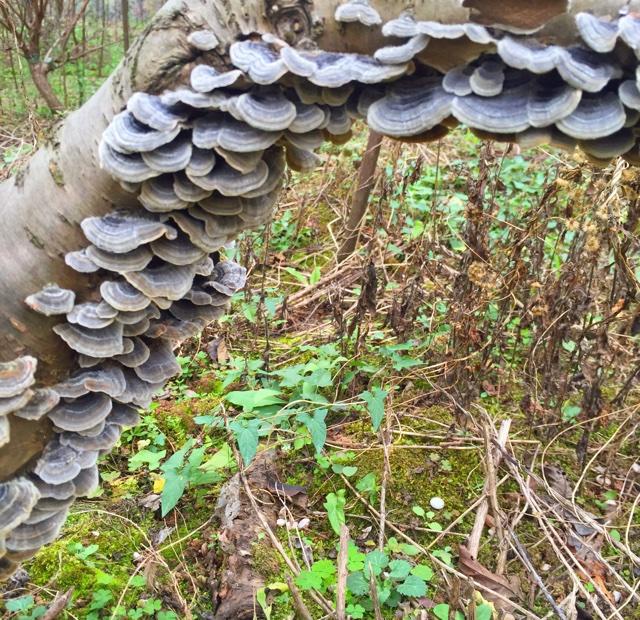 前几天去农场,看见这个比较美,拍了照,昨天才知它叫云芝,天然的好药材!改天去把它们采回来。