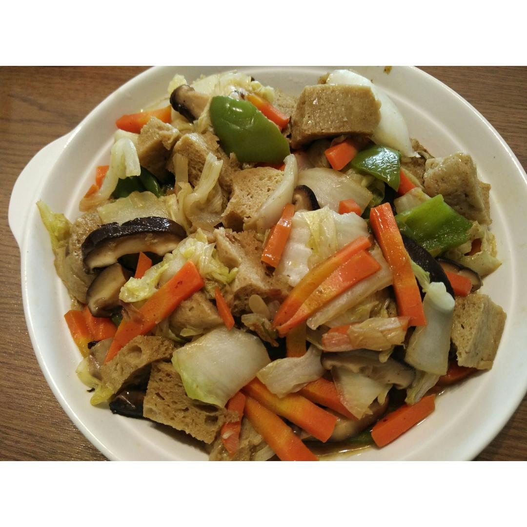 额外加了白菜和香菇,面筋太吸盐了,搞得其他菜正好,就面筋好咸
