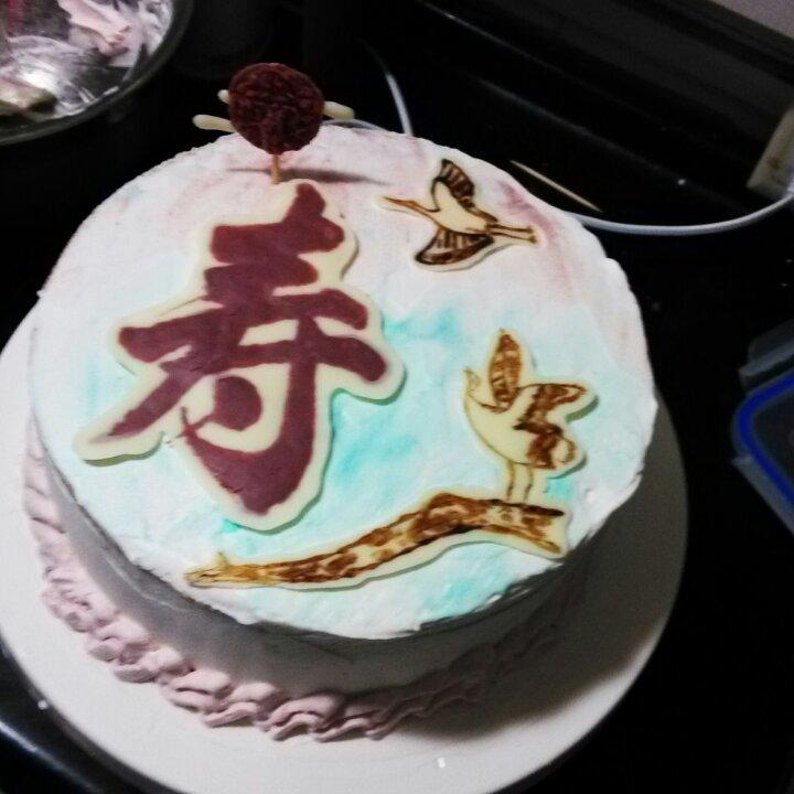 松鹤祝贺寿辰奶油生日蛋糕
