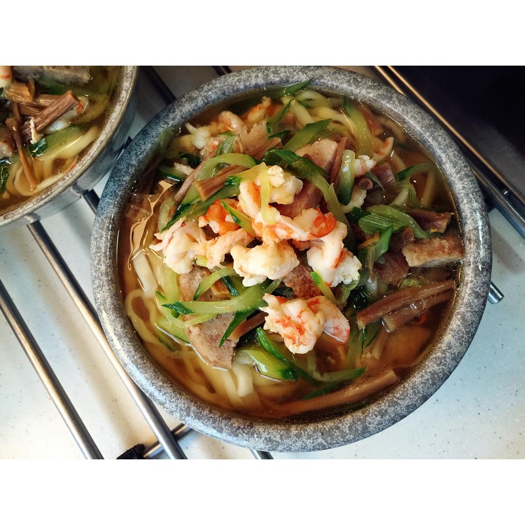 青岛中雨,天阴沉沉的,吃个大虾肉丸子手擀面驱驱寒气!