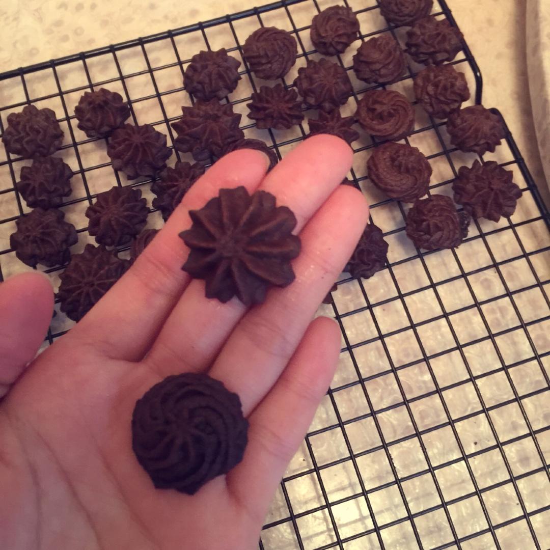 挤了2种形状的曲奇,味道不错,爱吃巧克力人的福音