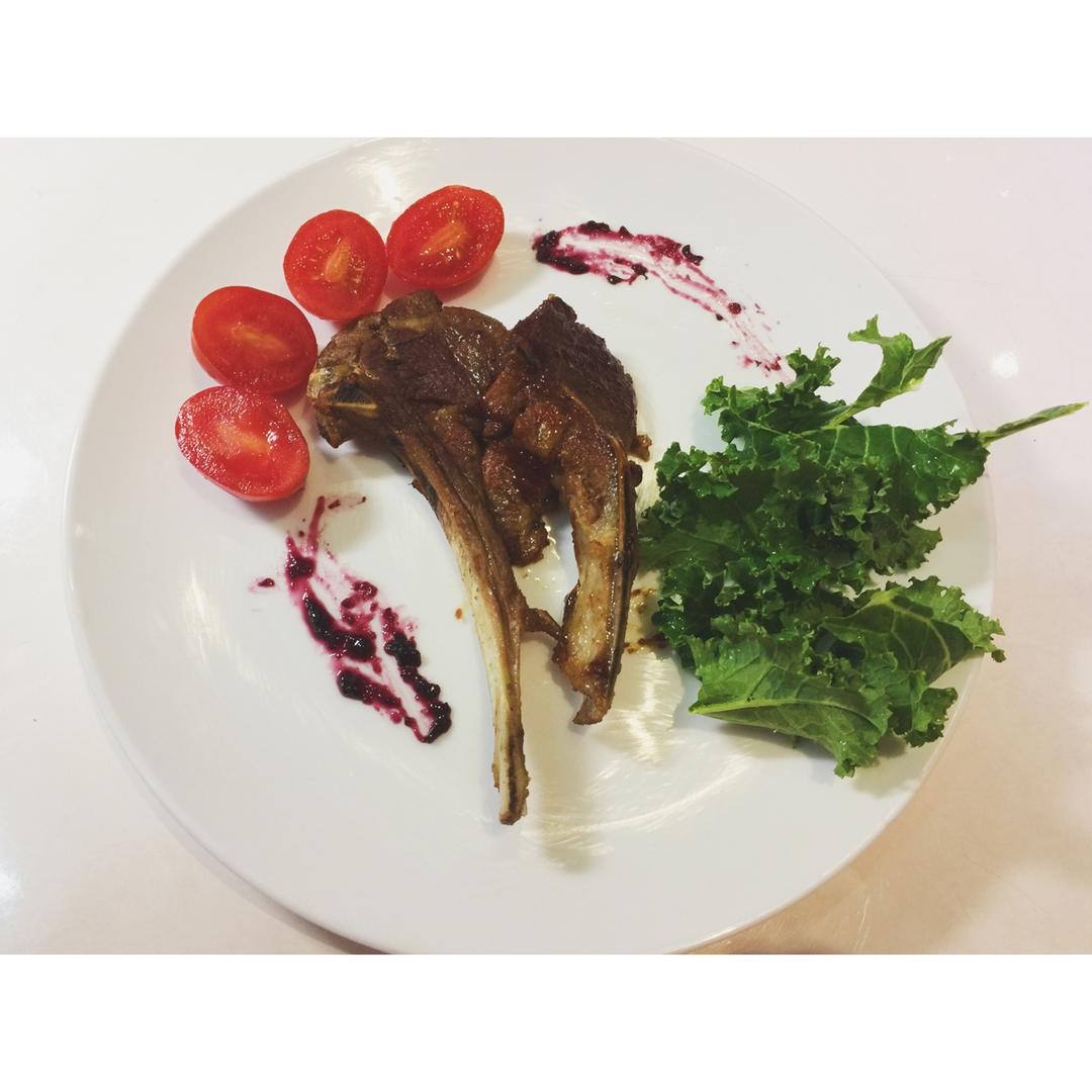 超嫩的羊排,搭配羽衣甘蓝、小番茄,倍觉美味!