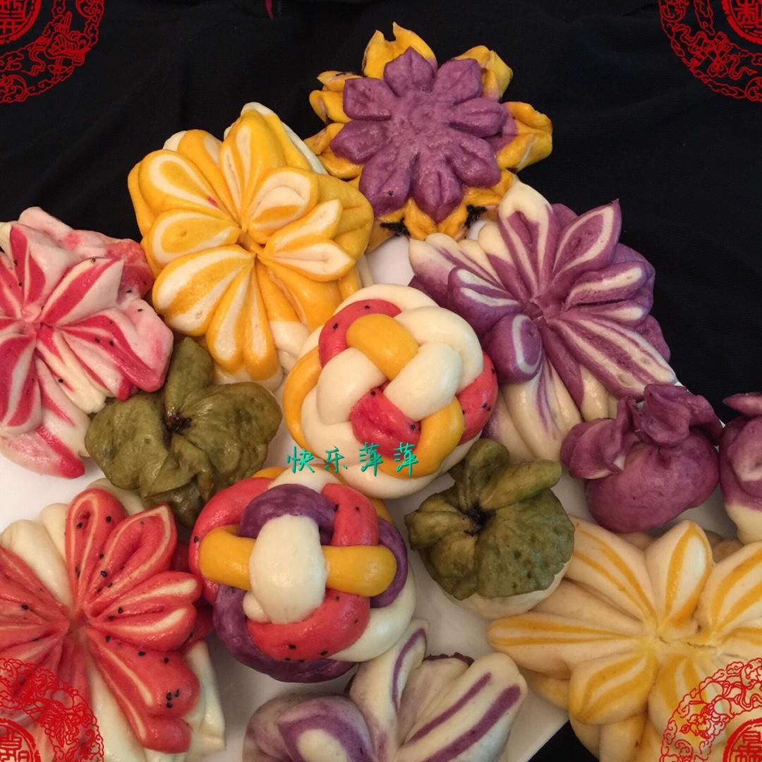今天忙活半天蒸了一些花馒头,总算全部完成,不加任何色素,全绿色食品,紫薯、菠菜、南瓜、火龙果汁