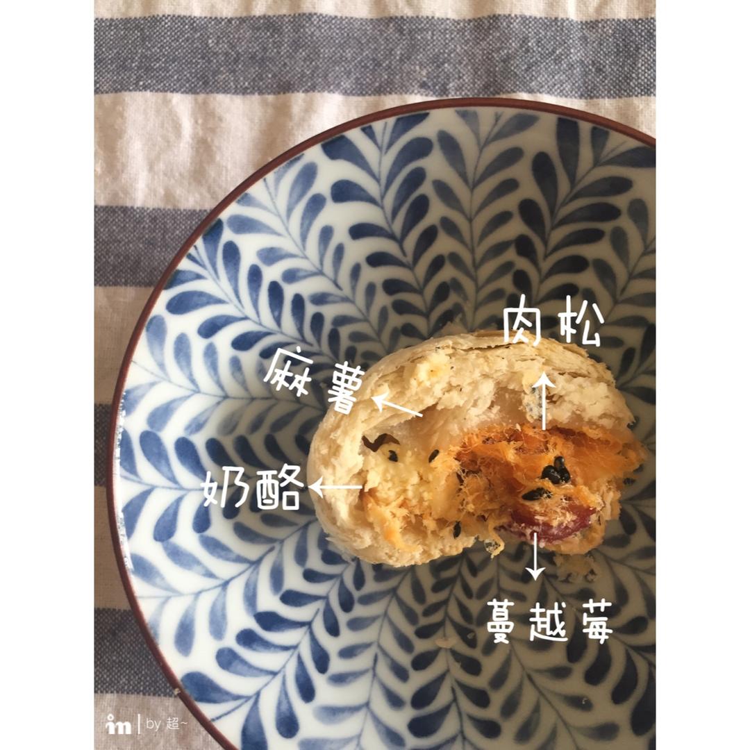 龙猫-53 做过 麻糍酥(豆沙馅) 看错时间了,醒面多了20分钟,有些干啊,还好我机智,用蛋黄刷了刷,黏住了。还发现第二次擀皮方式错了。第一次做,总归挺好,很酥。中下层,要盖锡纸。还有,肉松和奶酪不太搭… #酥# 2017-02-08