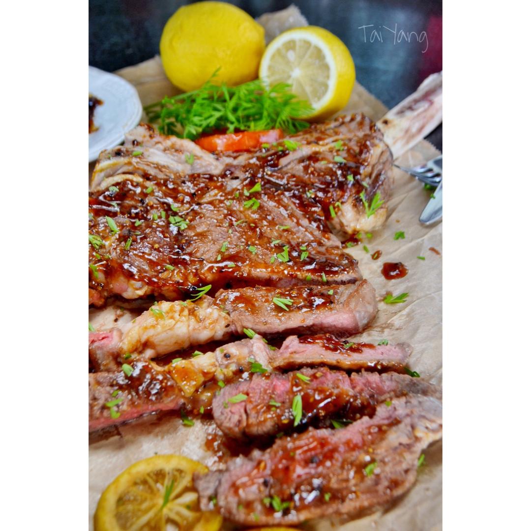 酱炙牛排配柠檬芝麻菜