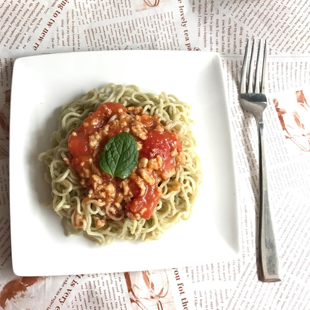 儿子说要吃意大利面……拿波纹面代替吧,哈哈
