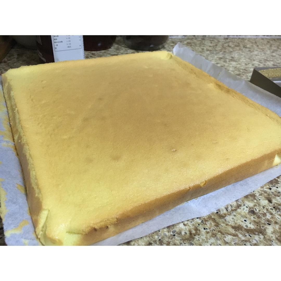 没做虎皮…鸡蛋增至五个,面粉95,糖75g(蛋黄:20 蛋清:55)牛奶50,植物油45