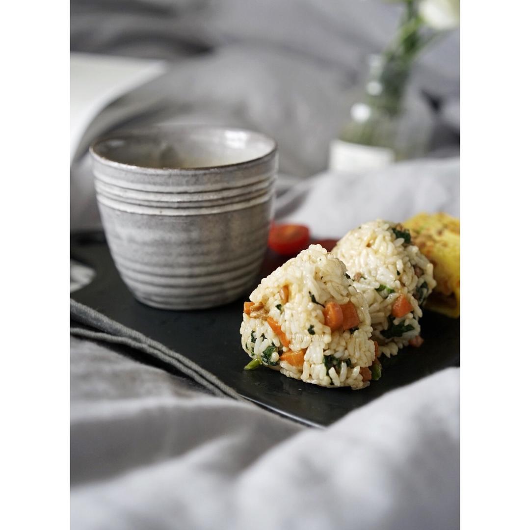 早餐打卡day15:今天吃日式风格早餐!胡萝卜金枪鱼松玉子烧+胡萝卜鸡丁青菜饭团+土豆胡萝卜味增汤!要物尽所用现有材料啊!昨天晚上吃鸡丁,剩下一点再把所有东西切成碎末,加一把切碎的青菜,跟米饭拌在一起,就是这个胡萝卜鸡丁青菜饭团啊,因为菜都有咸度,所以也不需要加调味啦。觉得自己实在太机智了 #早餐•2017年3月17日##稀稀拉拉约早饭#