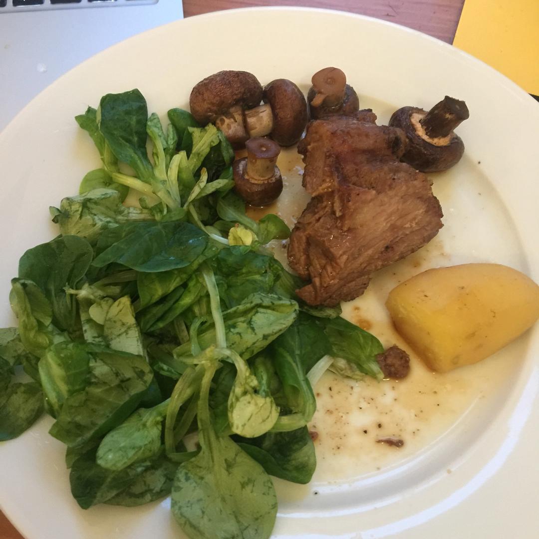 啤酒烤牛肉加口蘑 土豆跟沙拉菜