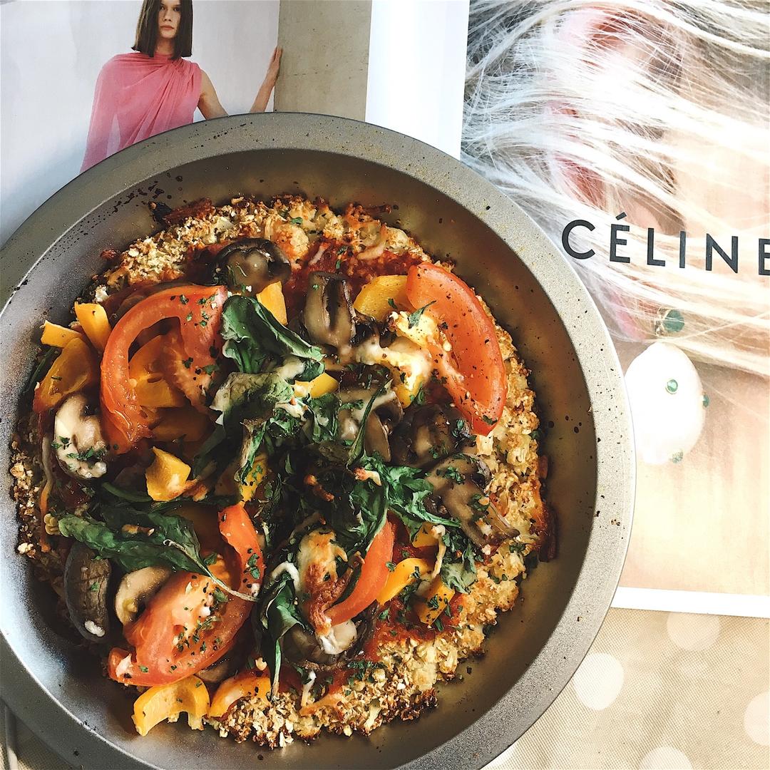 hjyjsigrid 做过 低碳西兰花底pizza🍕 🍕🍕Cauliflower Veggie Pizza🍕🍕#stayhealthy #veganpizza#cauliflowerpizza #午餐•2017年4月15日##stayfit##eatclean# 2017-04-16