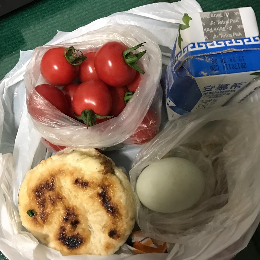 早饭昨晚上准备的。因为要上夜班吗?所以马相难看了点,将就将就吧!肉夹馍
