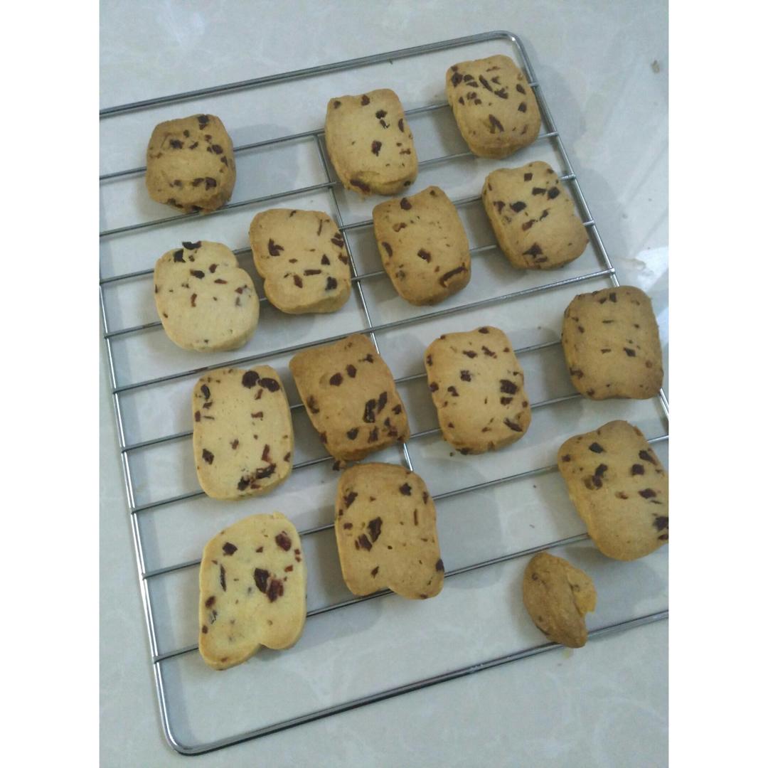 蔓越莓曲奇饼出炉了,这次是少糖,但是很酥脆香甜哦😁