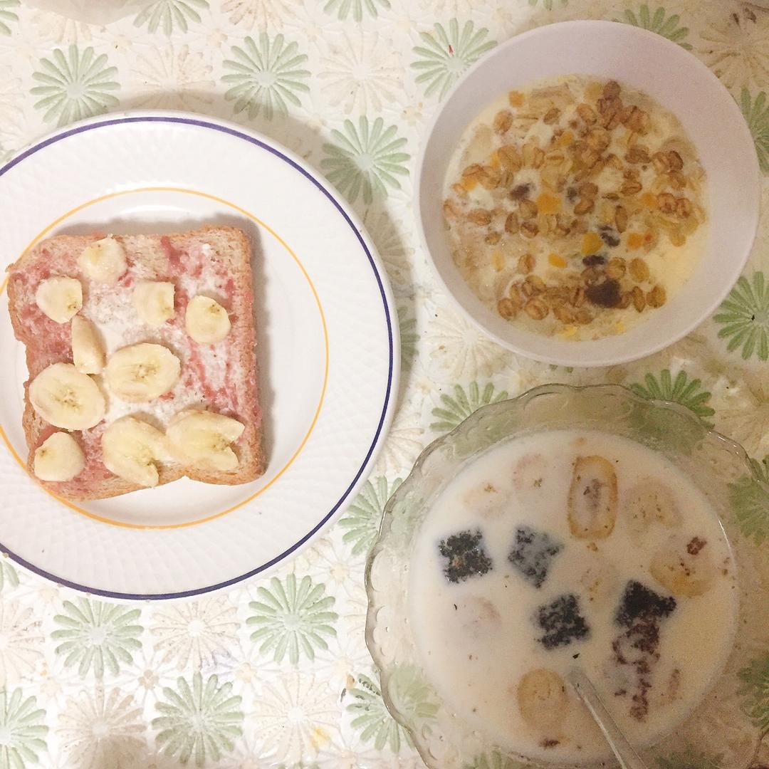 燕麦蛋奶羹+开放吐司+草莓