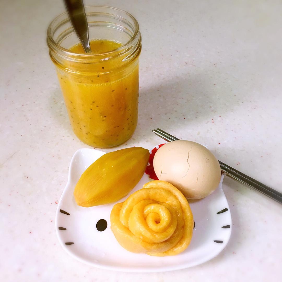 Miao滋味 做过 早餐马拉松顺利收官:因为坚持,所以更好! 我的早餐:白煮蛋、胡萝卜馒头、小红薯、芒果汁,之前网购了一点杂粮,奇亚籽一直还没打开,今天翻东西看见了就加了一点在芒果汁里……昨天有事忘记买菜了,家里弹尽粮绝了……鸡蛋红薯馒头包括芒果都是家里剩的最后一个…… #早餐•2017年5月13日# 2017-05-13