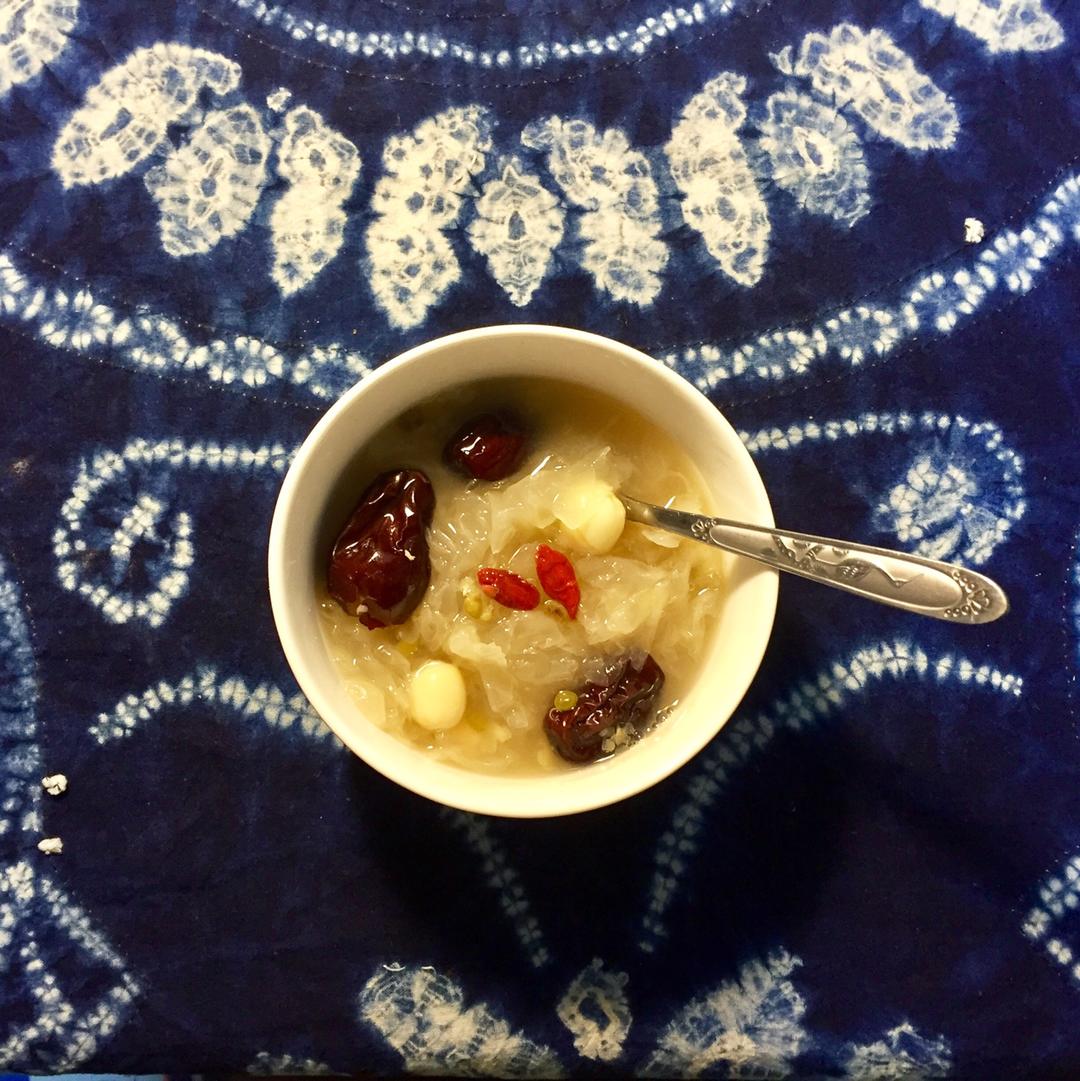 迎接夏天的糖水,一口气放了好多喜欢的食材:银耳莲子绿豆红枣枸杞子~ ❤️