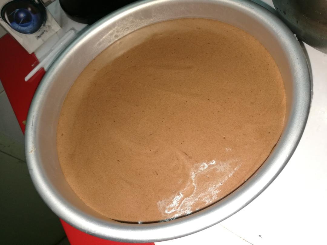八寸可可戚风,烤了一个小时,长高了也不塌,而且口味特别好!