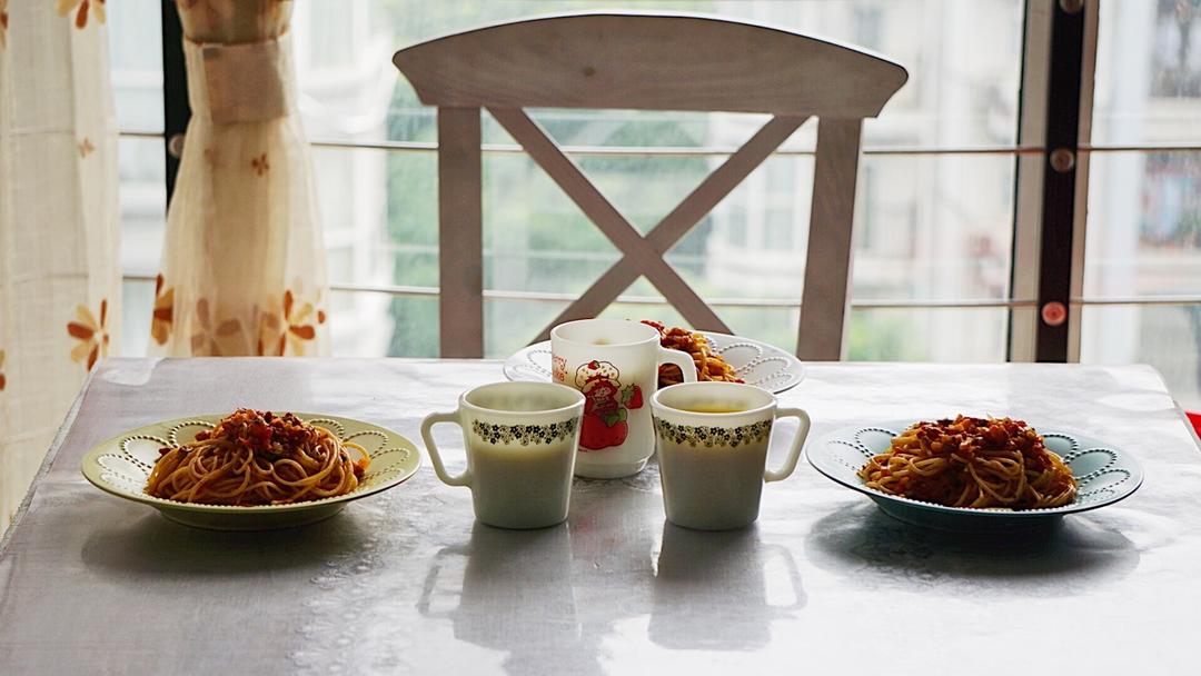 昨晚熬了一锅意大利肉酱'今天早餐就简单多了