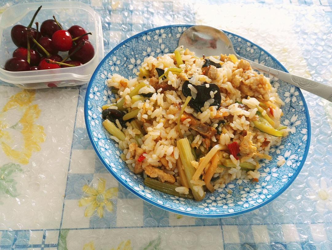 杂蔬炒饭,大樱桃,5分钟搞定,吃完抓紧眯个午觉😴