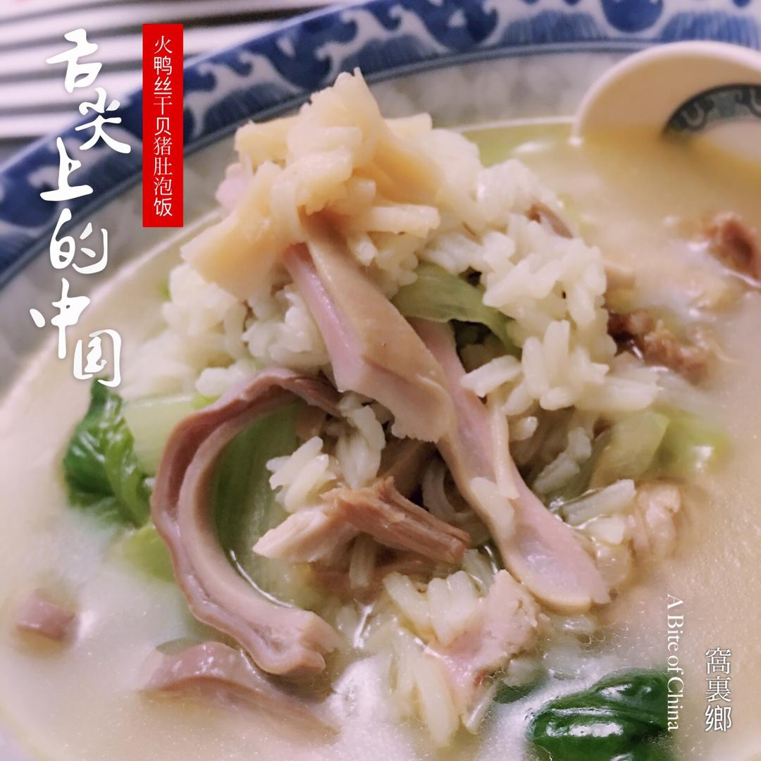 火鸭丝干贝猪肚菜泡饭
