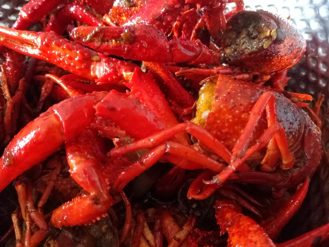 边拉去 做过 麻辣小龙虾 第一次做哦,第一次吃哦,一直都看麻小特火,但害怕外面的特别不干净,也不敢吃,但心里还是痒痒的,所以去买了,自己处理。话说这个小龙虾是真心不好处理,洗了大概有10盆水,头要剪掉一半,一定要留钳子,要不味道进不太去,虽然吃的时候只吃虾尾,小龙虾一定要活的,死的一定不要吃哦,我放的是重庆麻辣火锅的底料,特棒,能吃辣的建议放一半就可以!最后说一下,小龙虾还是自己做放心一点,吃完自己做的我相信让你再出去吃,你都不想去,真的特别棒! 2017-07-01